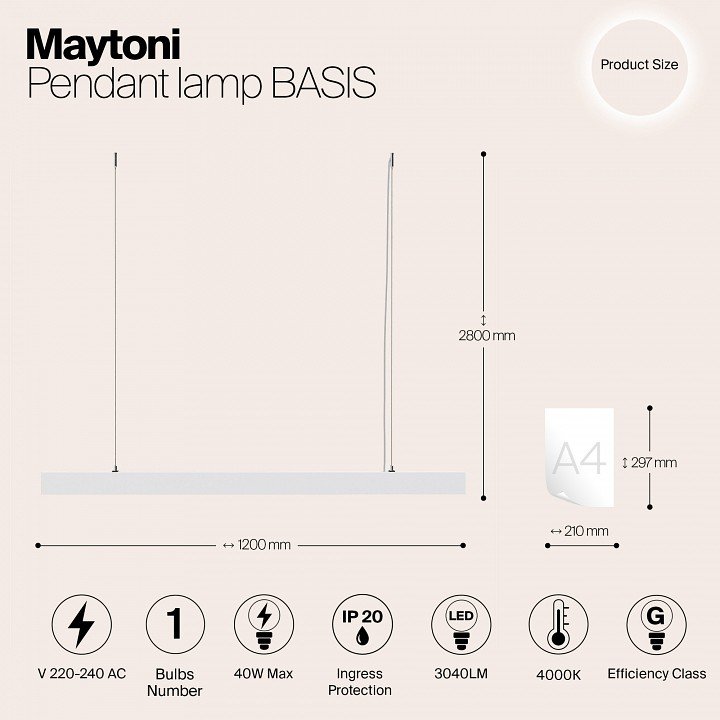 Станьте первым, кто оставит отзыв о товаре Подвесной светодиодный светильник Maytoni Vinder P051PL-L40W4K.