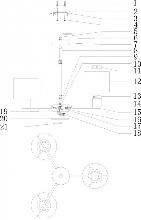 Основная форма светильника (Для подвесных люстр, потолочных люстр и подвесных светильников): Несколько плафонов