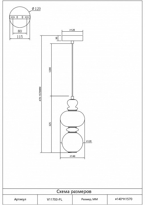 Длина подвеса, мм: 1200