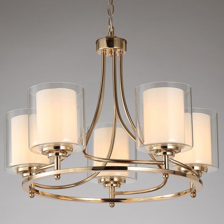 Давно искал что-то подобное и эта люстра порадовала максимально продуманным дизайном исполнения. Понравился внешний вид с арматурой под золото и матовые плафоны с прозрачным оформлением, направленные вверх. Есть возможность для подключения диммера, а это для меня принципиально для управления яркостью.