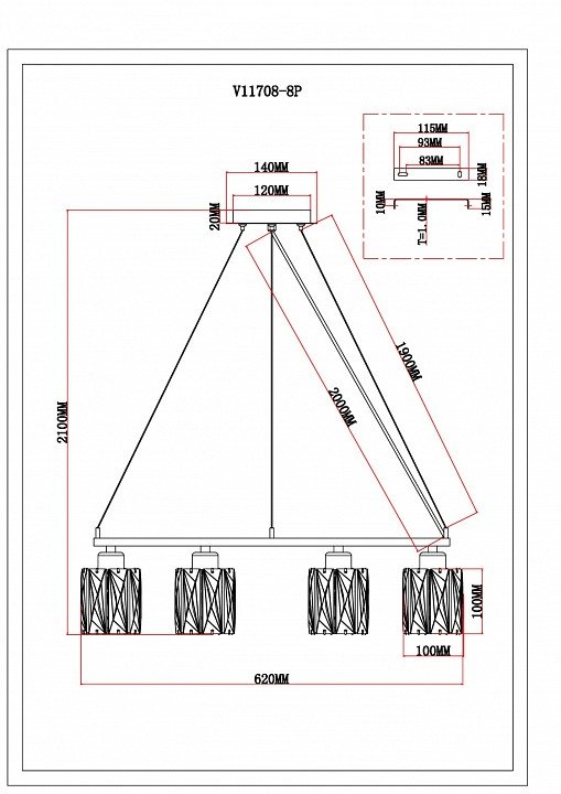 Длина подвеса, мм: 1800