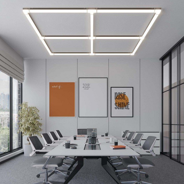 Компоненты, входящие в комплект: светильник-соединитель 'L'- образный с одним сетевым входом. прямой соединитель. крепежные планки. заглушки