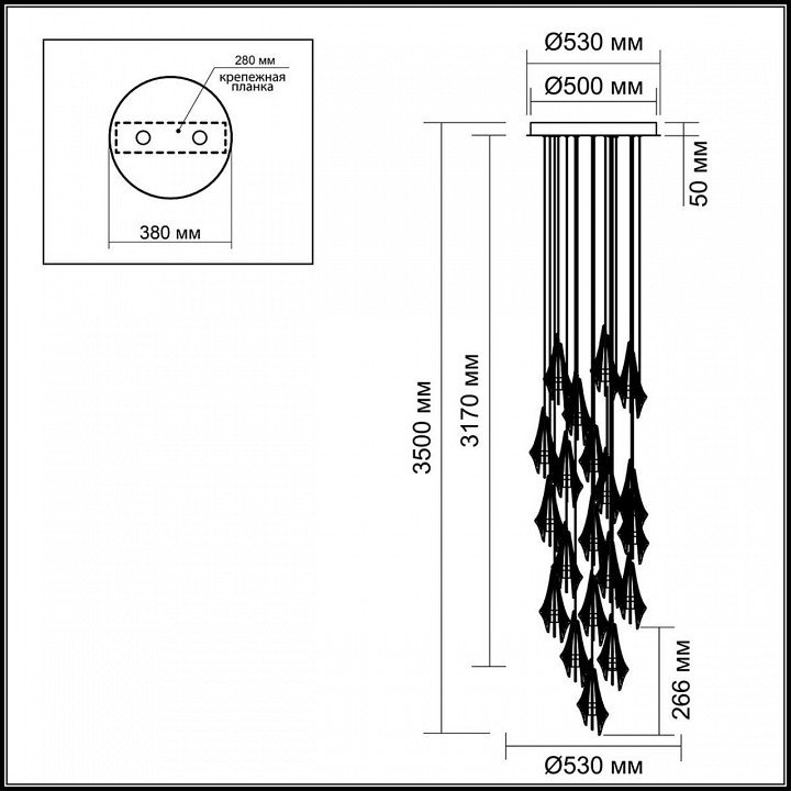 Точная форма - Несколько плафонов (Для подвесных люстр, потолочных люстр и подвесных светильников): Каскад в одну комнату