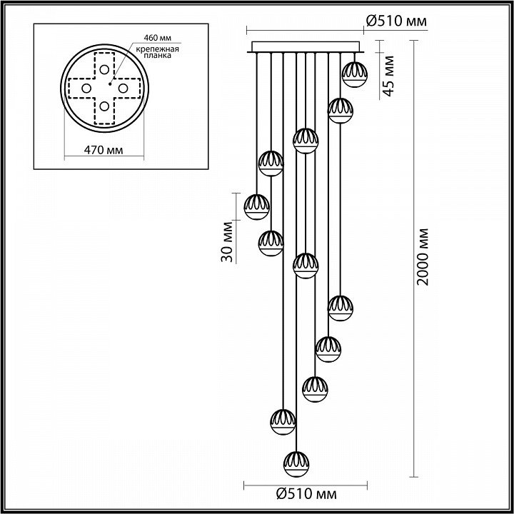 Основная форма светильника (Для подвесных люстр, потолочных люстр и подвесных светильников): Несколько плафонов