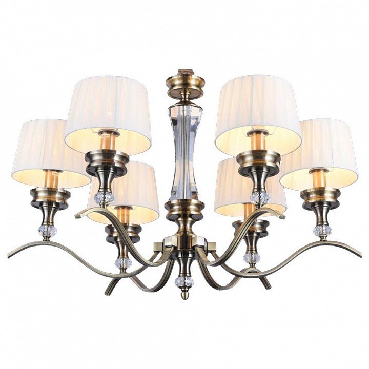 Шикарная люстра в классическом стиле, идеально вписалась в нашу спальню! Рельефные тканевые плафоны с направлением вверх дают мягкий и уютный свет, а матовая арматура под бронзу смотрится очень элегантно. Огромный плюс за возможность подключения диммера!
