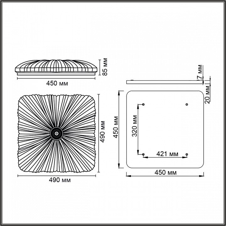 Форма плафона: Квадратный