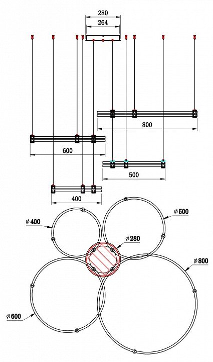 Точная форма - Без плафонов (Для подвесных люстр, потолочных люстр и подвесных светильников): Кольца на подвесе