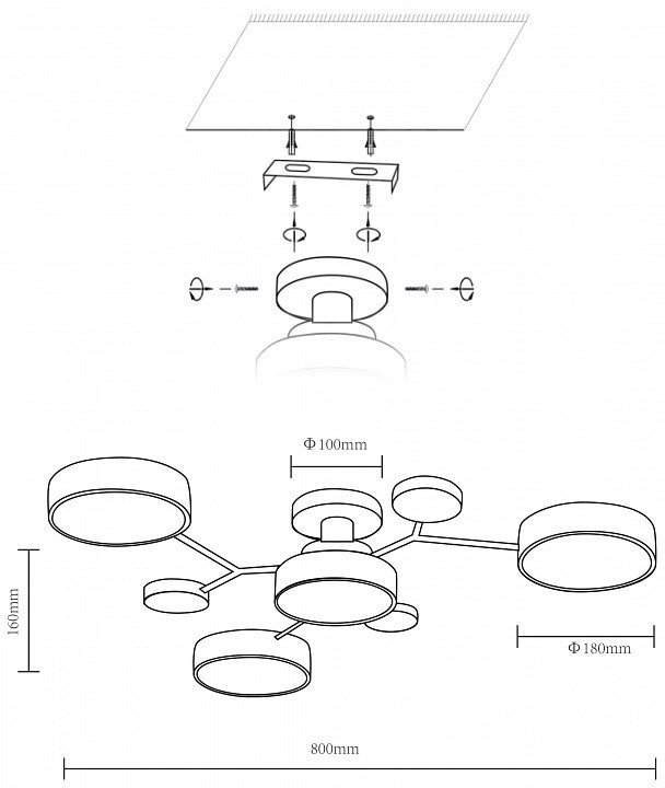 Основная форма светильника (Для подвесных люстр, потолочных люстр и подвесных светильников): Несколько плафонов