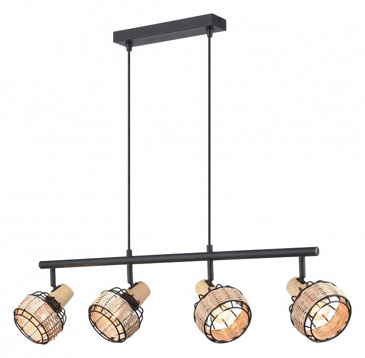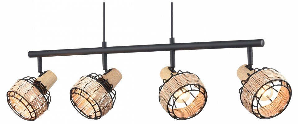 Спот на штанге черный/ротанг 4 рожка 563-713-04