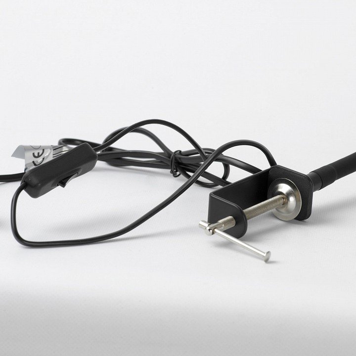 Очень практичная лампа на самом деле. Поворачивается в любую сторону, что удобно для работы за столом. Черный металл выглядит современно, крепление держится надежно.