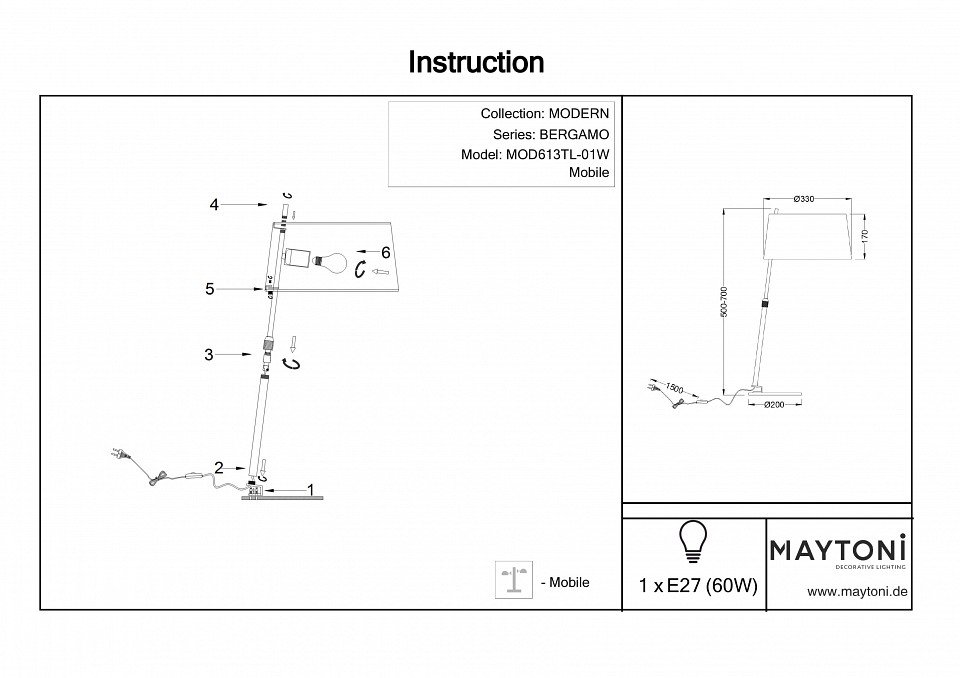 Станьте первым, кто оставит отзыв о товаре Настольная лампа Maytoni Bergamo MOD613TL-01W.