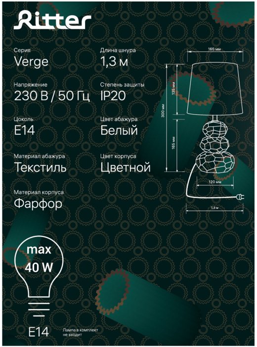 Главная Настольные лампы Настольная лампа Ritter Verge 52702 2