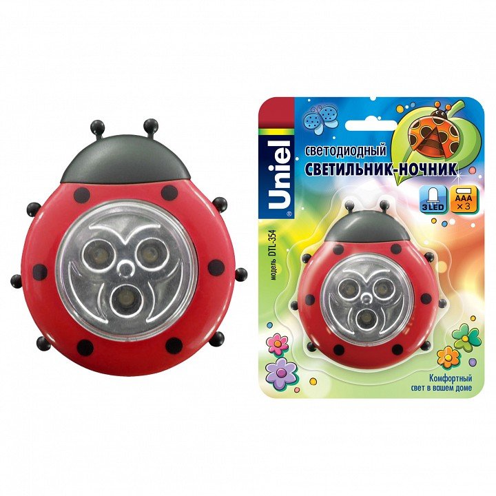 Светодиодный светильник Uniel (07717) DTL-354 Божья Коровка/Red/3LED/3AAA