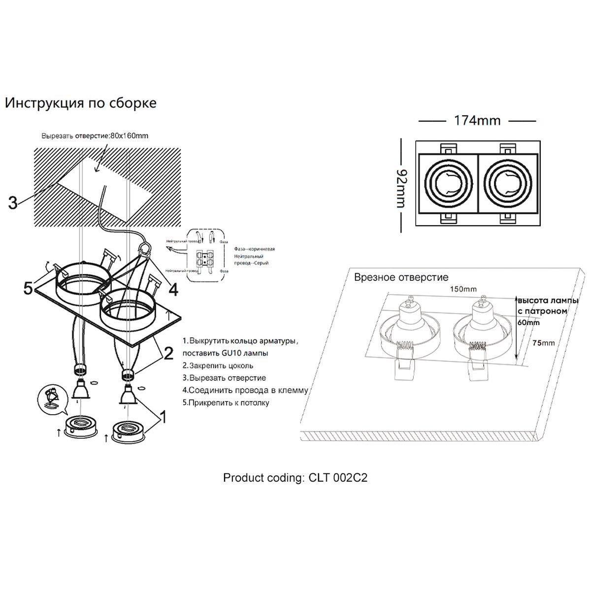 Станьте первым, кто оставит отзыв о товаре Встраиваемый светильник Crystal Lux CLT 002С2 BL.