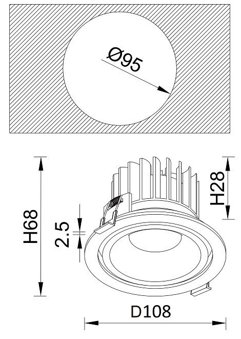 Диаметр врезного отверстия, мм: 95