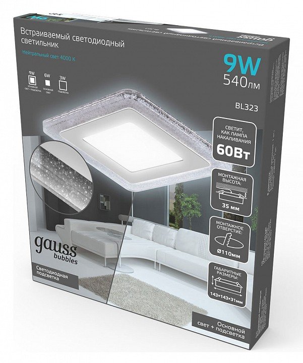 Встраиваемый светодиодный светильник Gauss Backlight Bubbles BL323