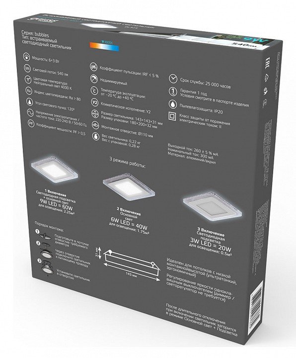 Станьте первым, кто оставит отзыв о товаре Встраиваемый светодиодный светильник Gauss Backlight Bubbles BL323.