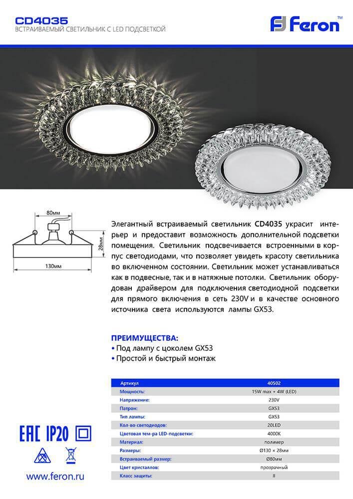 Встраиваемый светильник Feron CD4035 40502