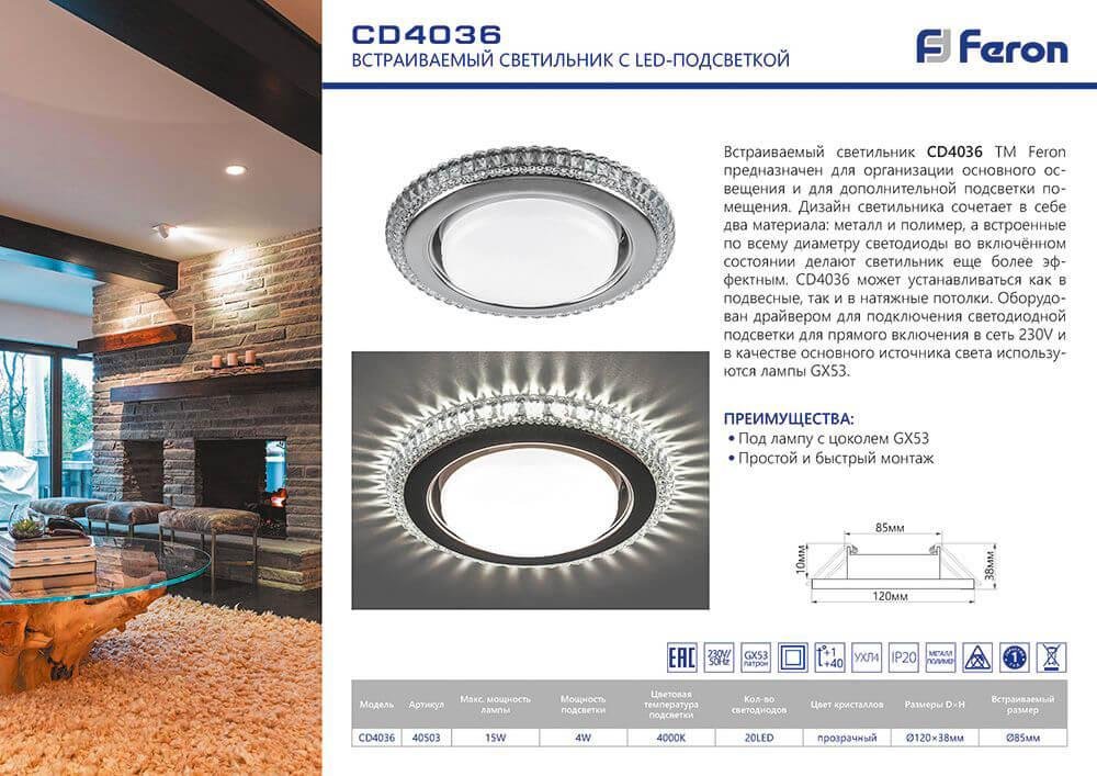 Главная Точечные светильники Встраиваемый светильник Feron CD4036 40503