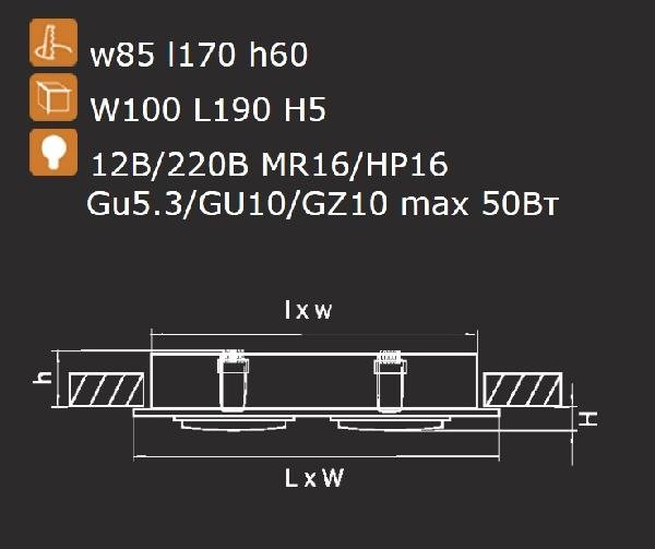 Тип установки светильника: встраиваемый