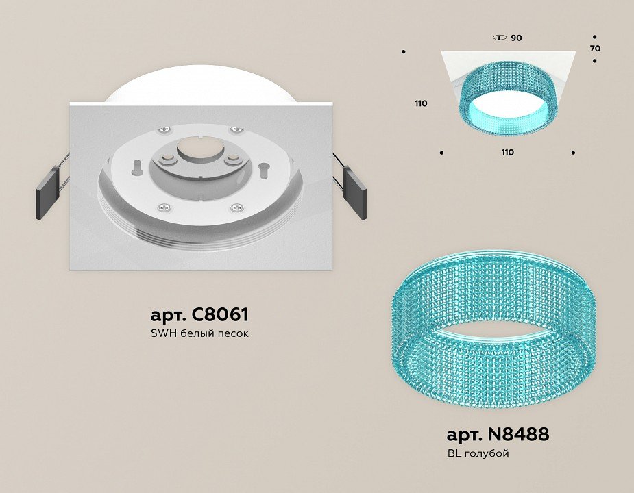 Компоненты, входящие в комплект: встраиваемый корпус d110. . насадка передняя d85