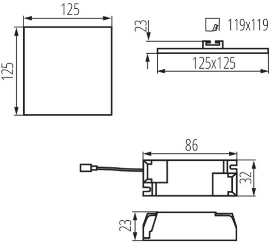 Диаметр врезного отверстия, мм: 119х119