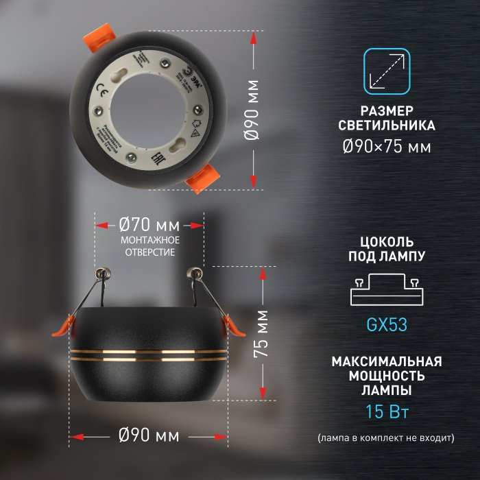Станьте первым, кто оставит отзыв о товаре Встраиваемый светильник ЭРА KL81 BK/GD Б0049009.