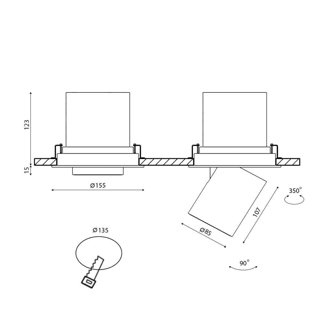 Диаметр врезного отверстия, мм: 135