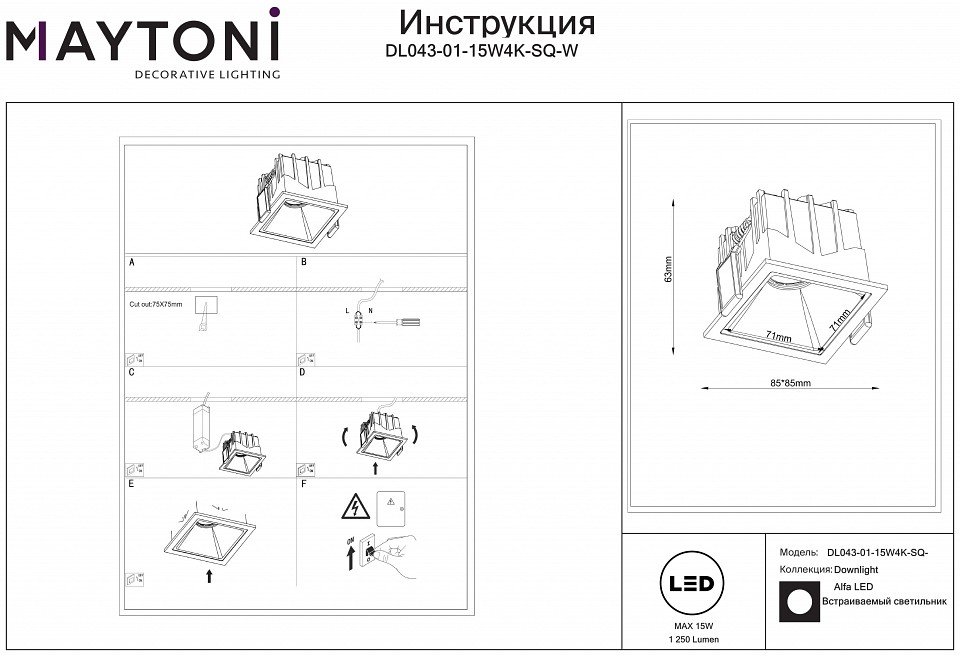 Артикул: DL043-01-15W4K-SQ-W