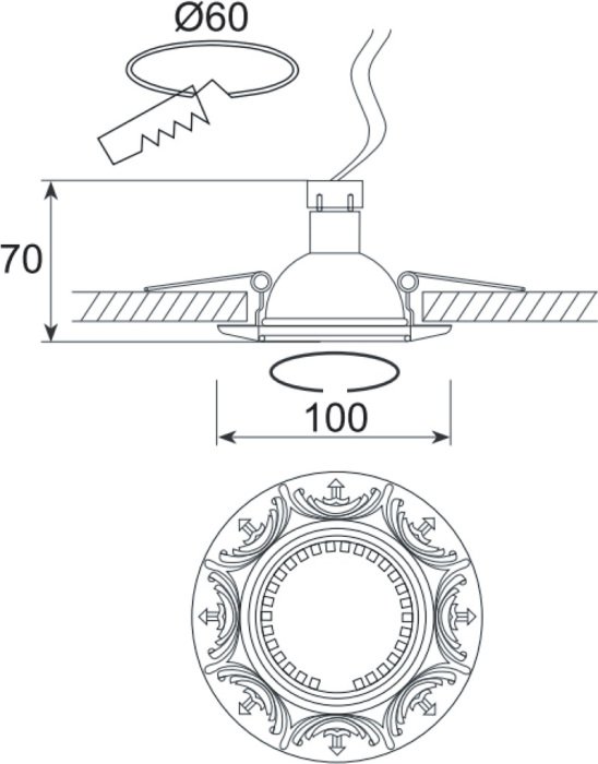 Диаметр врезного отверстия, мм: 60
