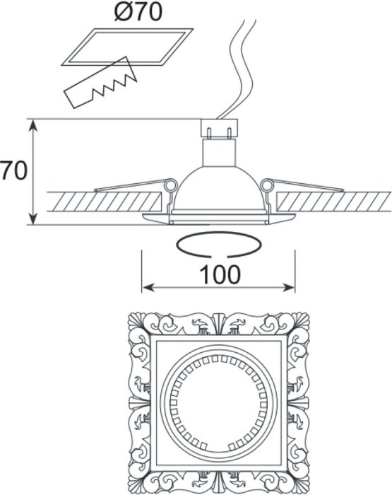 Диаметр врезного отверстия, мм: 70