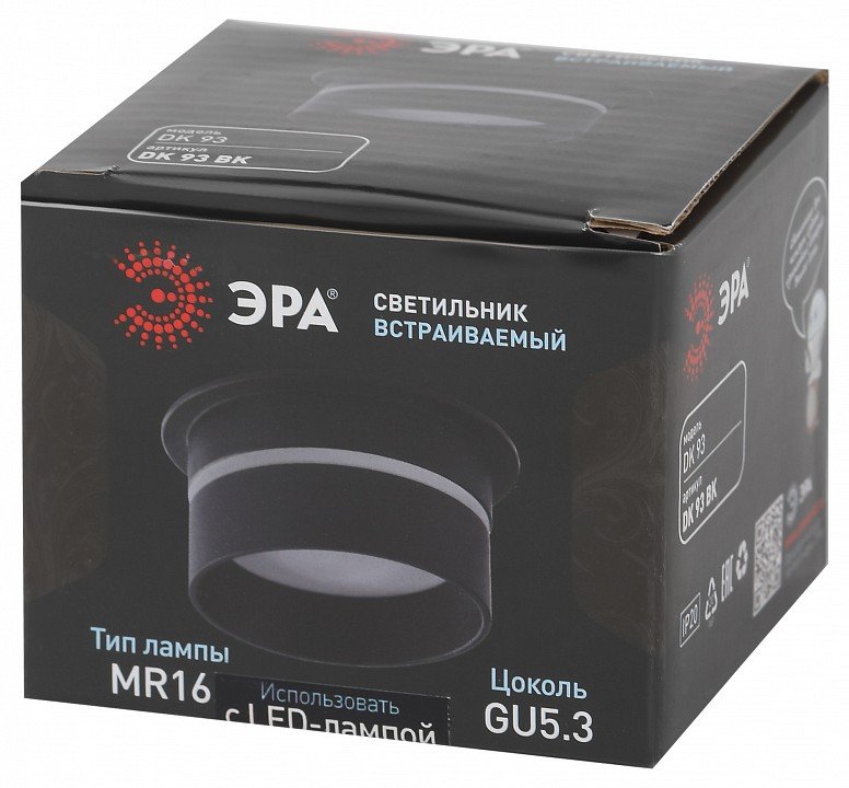 Главная Точечные светильники Встраиваемый светильник Эра DK 93 BK Б0054365