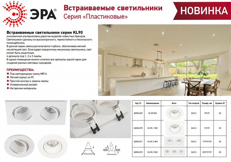 Главная Точечные светильники Встраиваемый светильник Эра KL90 WH Б0054369