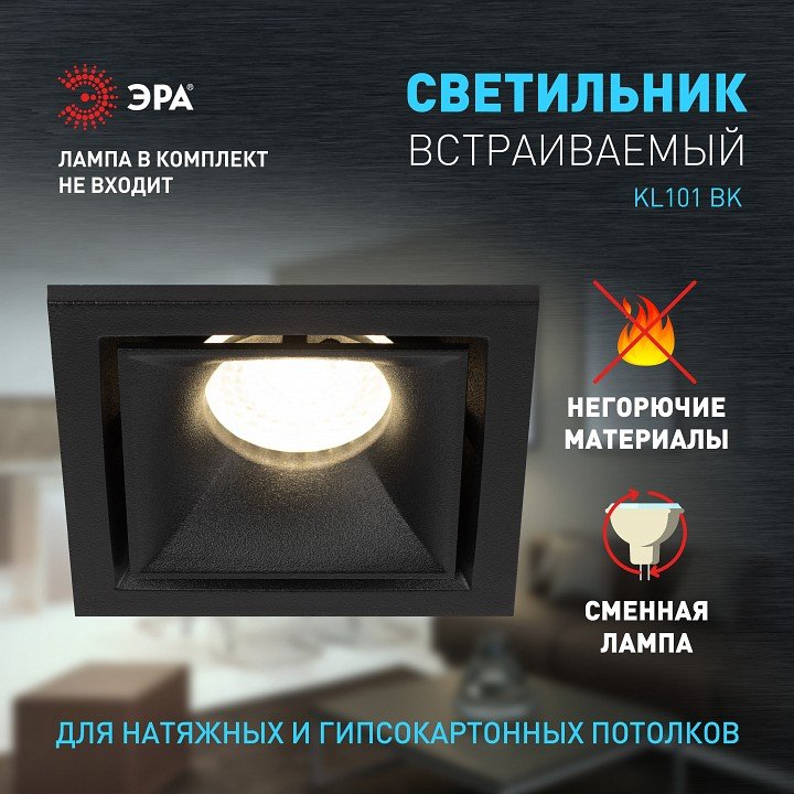 Главная Точечные светильники Встраиваемый светильник Эра KL101 BK Б0055587