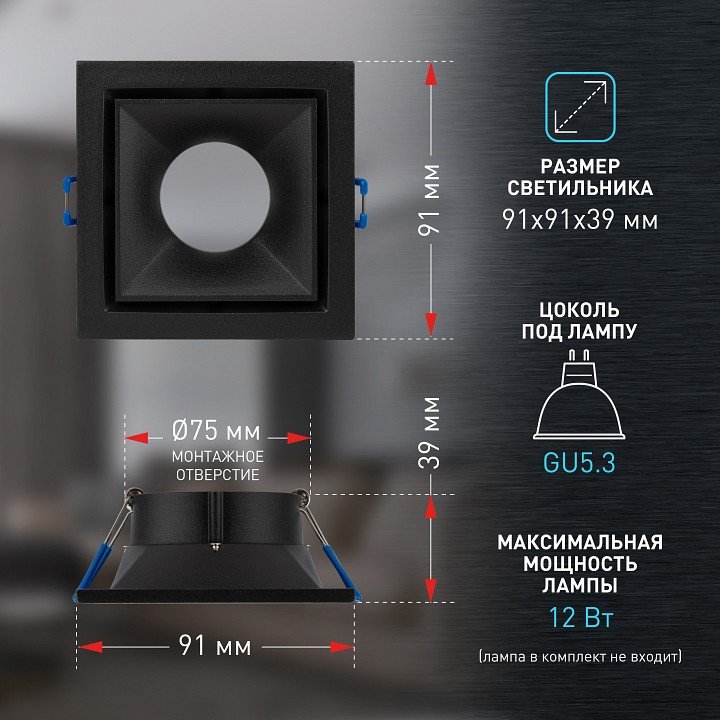 Тип установки светильника: встраиваемый