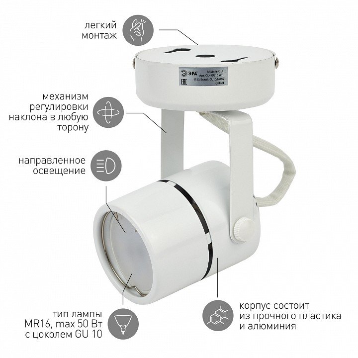 Главная Точечные светильники Светильник на штанге Эра OL4 GU10 WH Б0044267