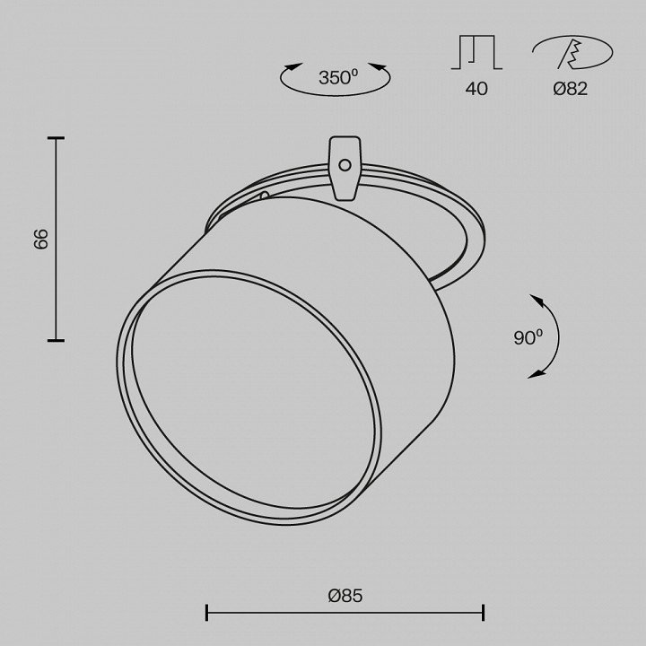 Диаметр врезного отверстия, мм: 82