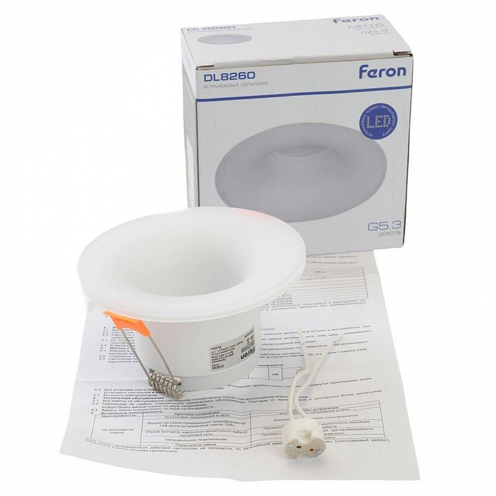 Станьте первым, кто оставит отзыв о товаре Светильник встраиваемый Feron DL8260 потолочный MR16 G5.3 прозрачный, белый 51149.
