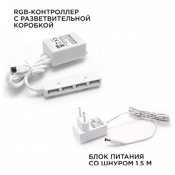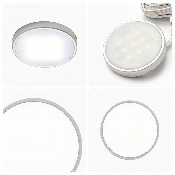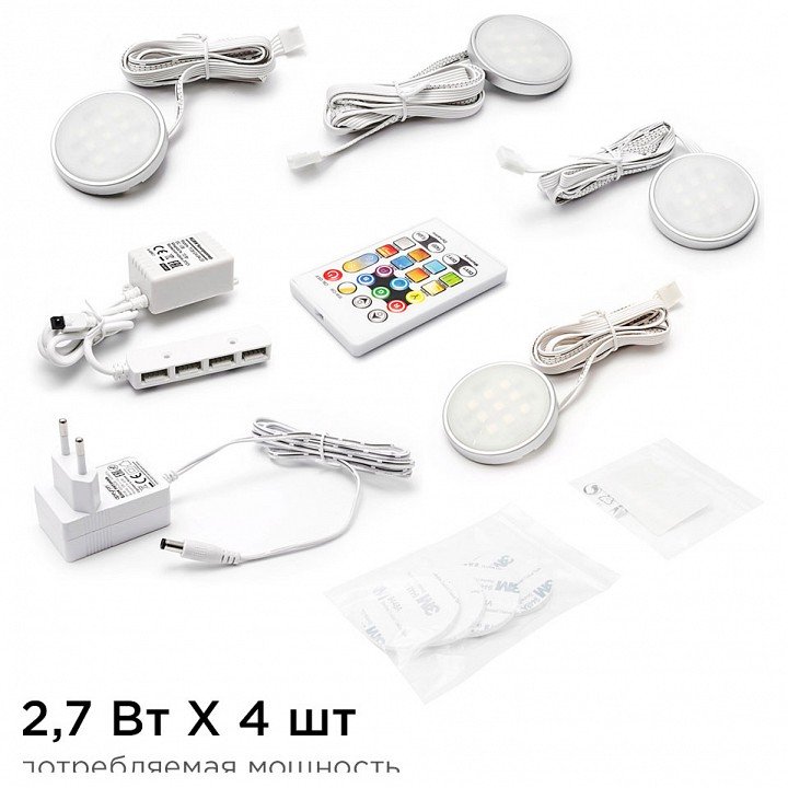 Компоненты, входящие в комплект: 4 накладных светодиодных светильника с кабелем 0.8 метра. блок питания 12Вт