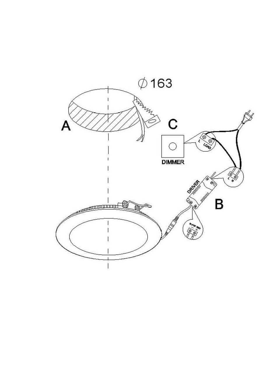 Диаметр врезного отверстия, мм: 163