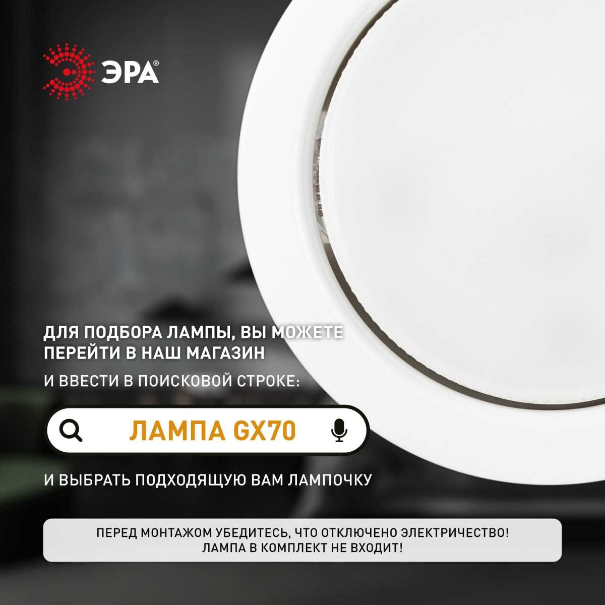 Станьте первым, кто оставит отзыв о товаре Светильник встраиваемый ЭРА ST70 WH под лампу GX70 белый Б0066255.