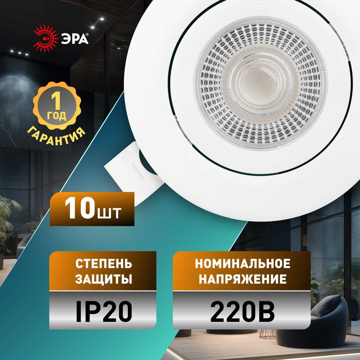 Главная Точечные светильники Светильник светодиодный встраиваемый ЭРА KL LED 25A-5 4K WH SET 10 5Вт 4000К круглый поворотный белый набор 10 шт Б0070938