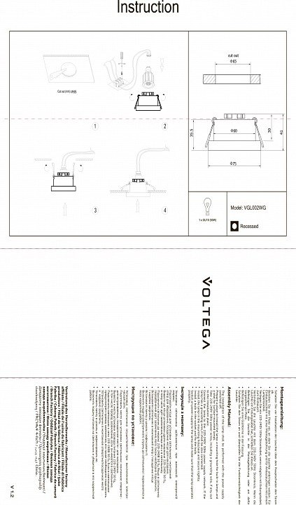 Станьте первым, кто оставит отзыв о товаре Точечный светильник VGL VGL002WG.