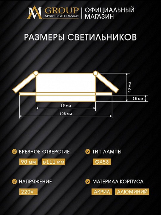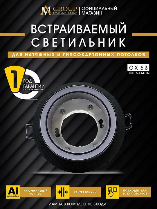 Станьте первым, кто оставит отзыв о товаре Встраиваемый светильник AM-Group AM539-GX53BK.