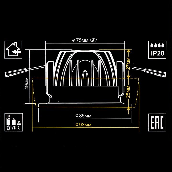 Возможность подключения диммера: можно