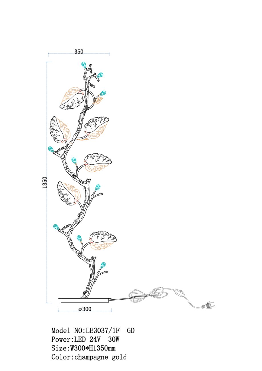 Главная Торшеры напольные Торшер Olivia LE3037/1F GD
