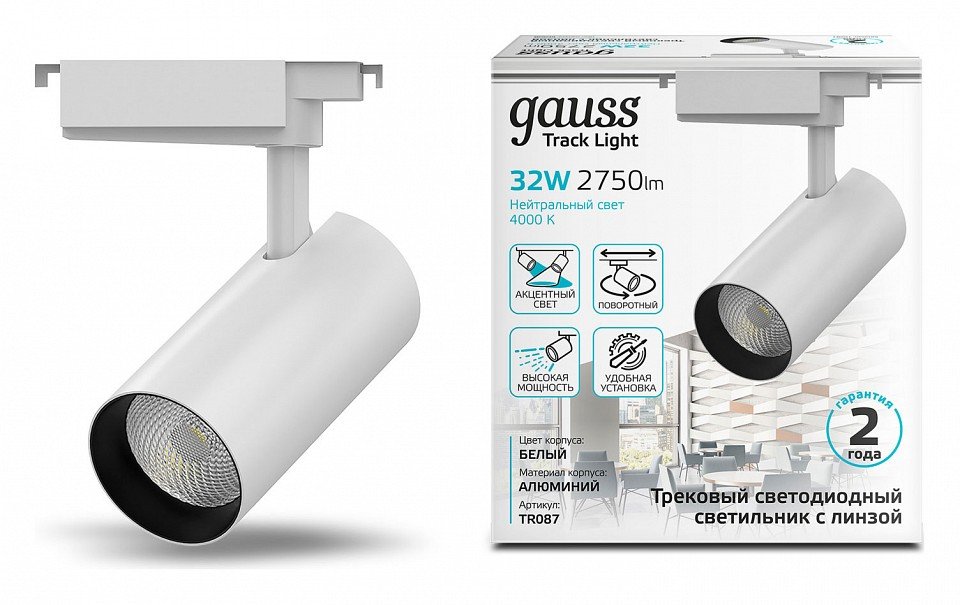 Главная Трековые светильники Светильник на штанге Gauss TR TR087