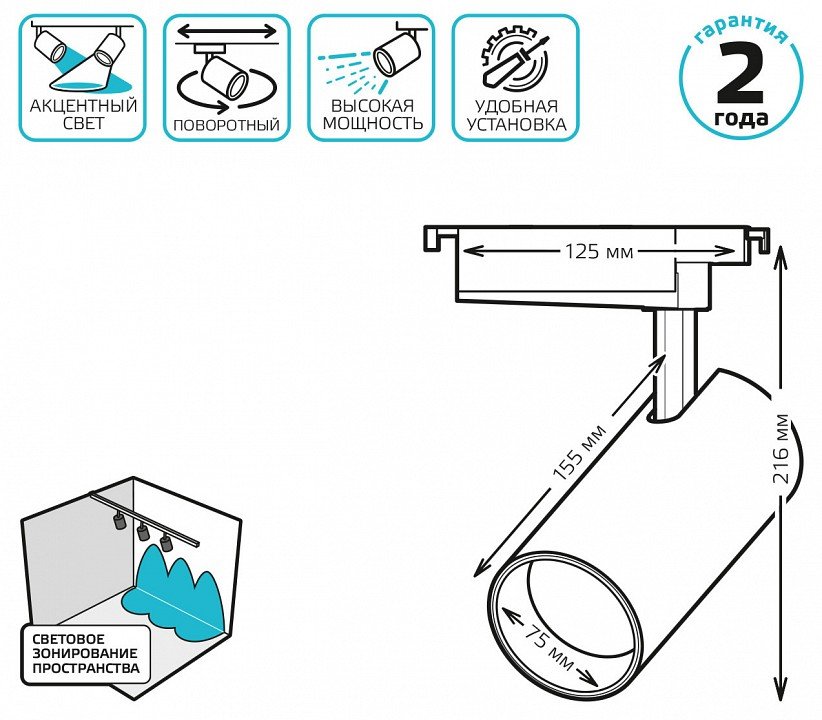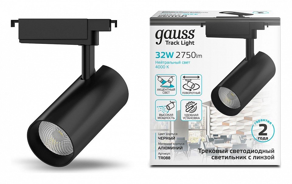 Главная Трековые светильники Светильник на штанге Gauss TR TR088