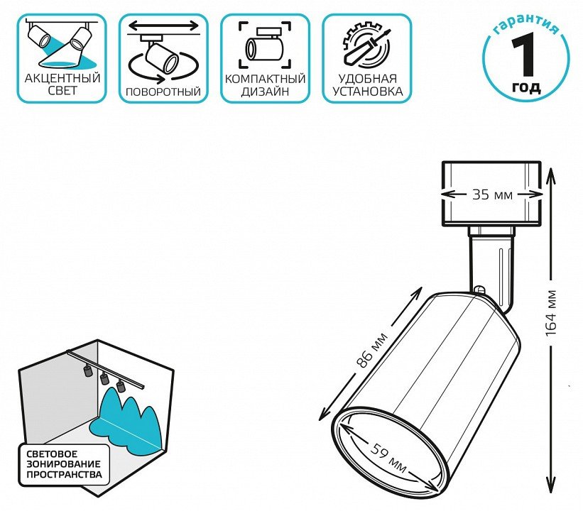 Главная Трековые светильники Светильник на штанге Gauss TR090 TR090