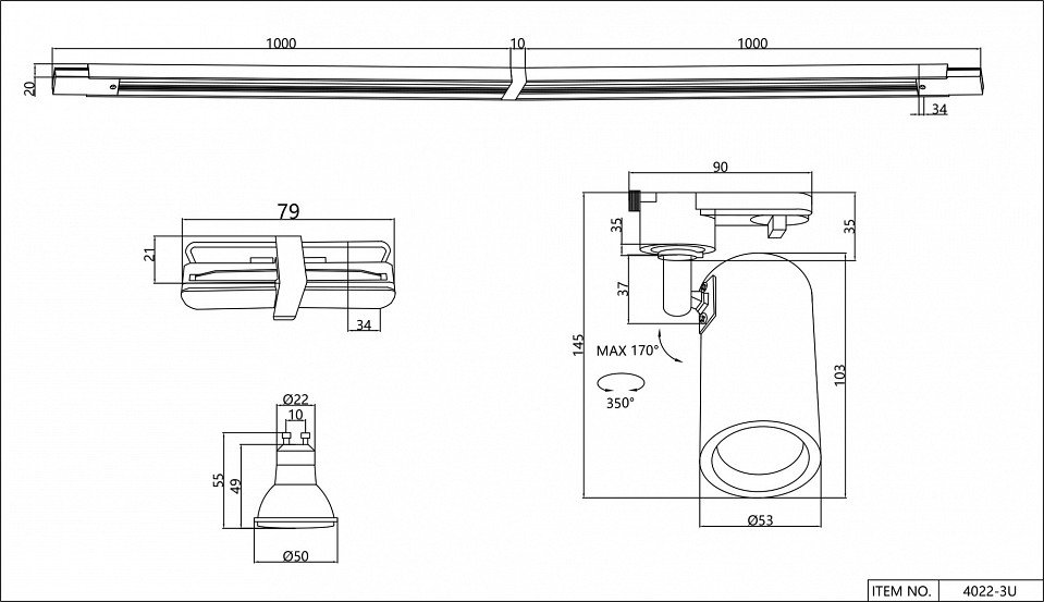 Компоненты, входящие в комплект: 3 спота. шинопровод (2х1м). коннектор